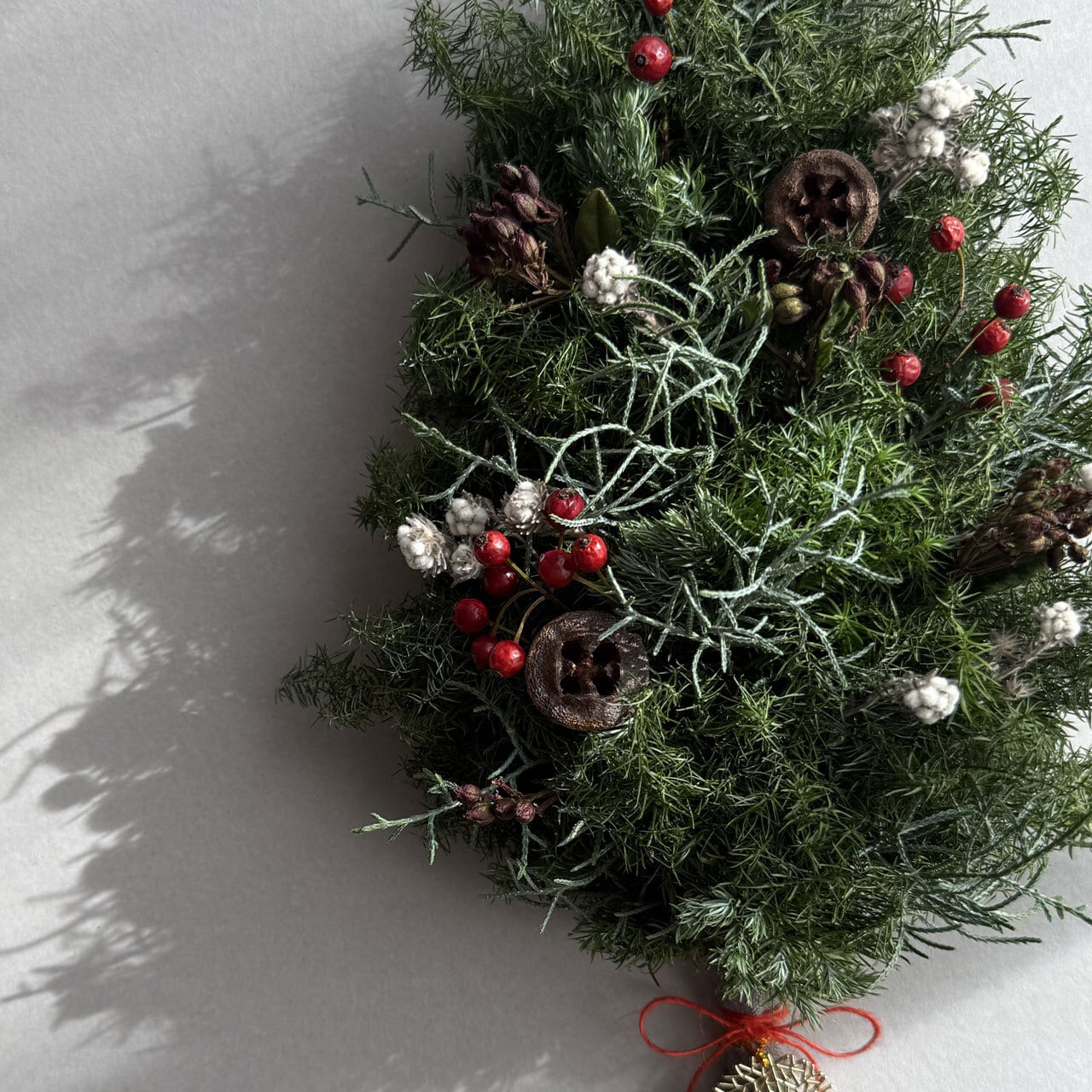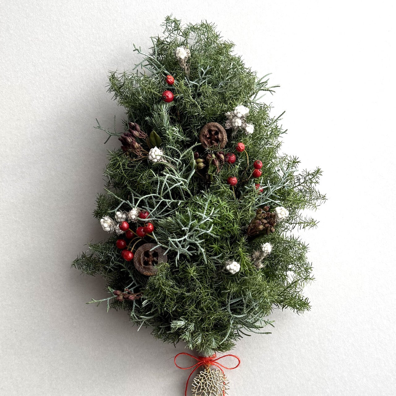 クリスマスツリー型の壁飾りです。フックにかけられるよう後ろ側にワイヤーがございます。