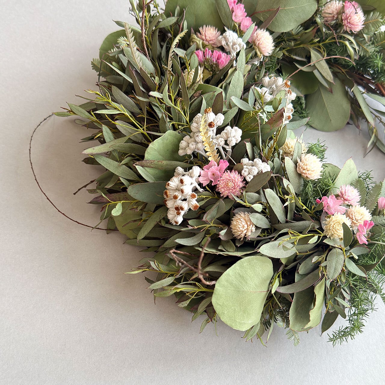 ユーカリと小花のリース