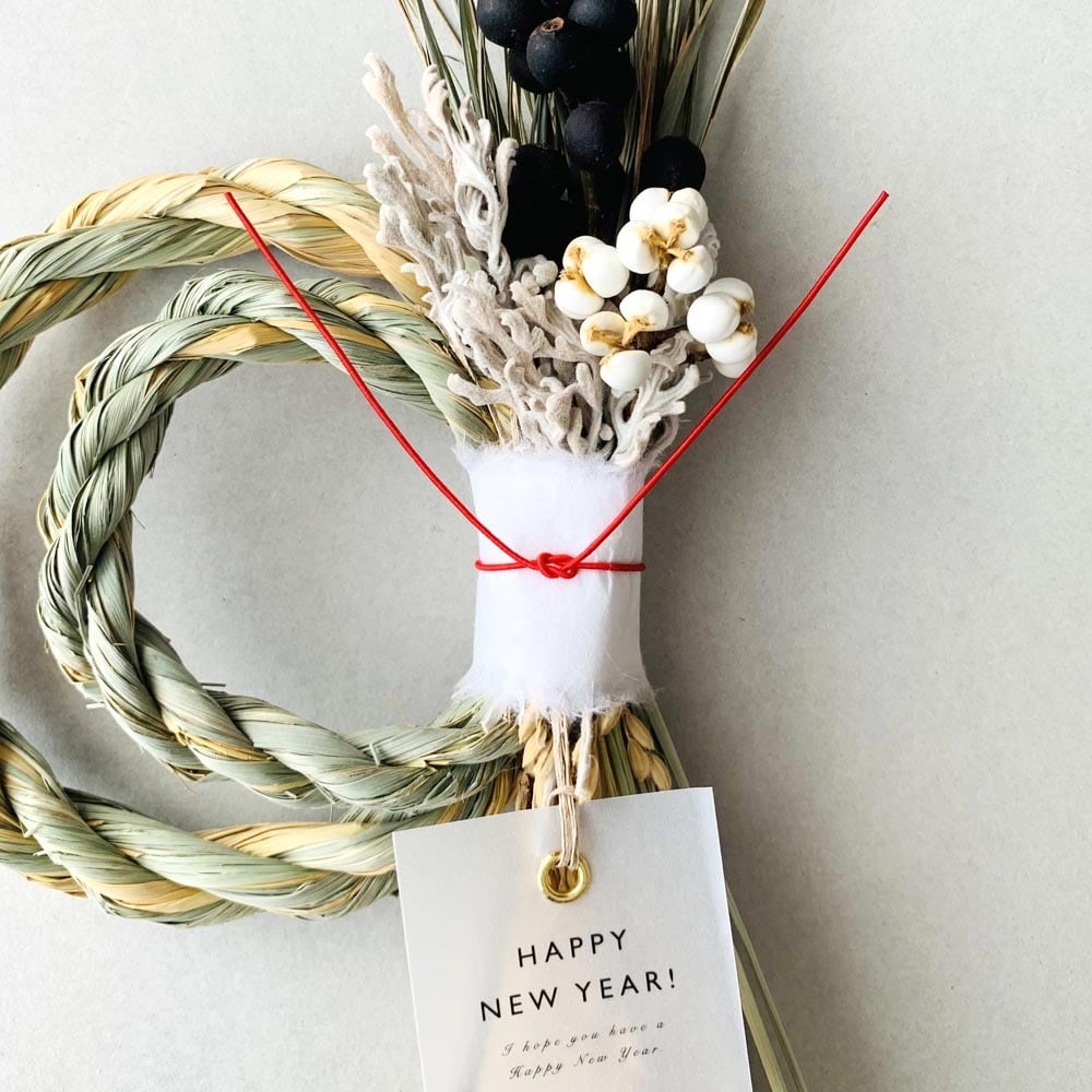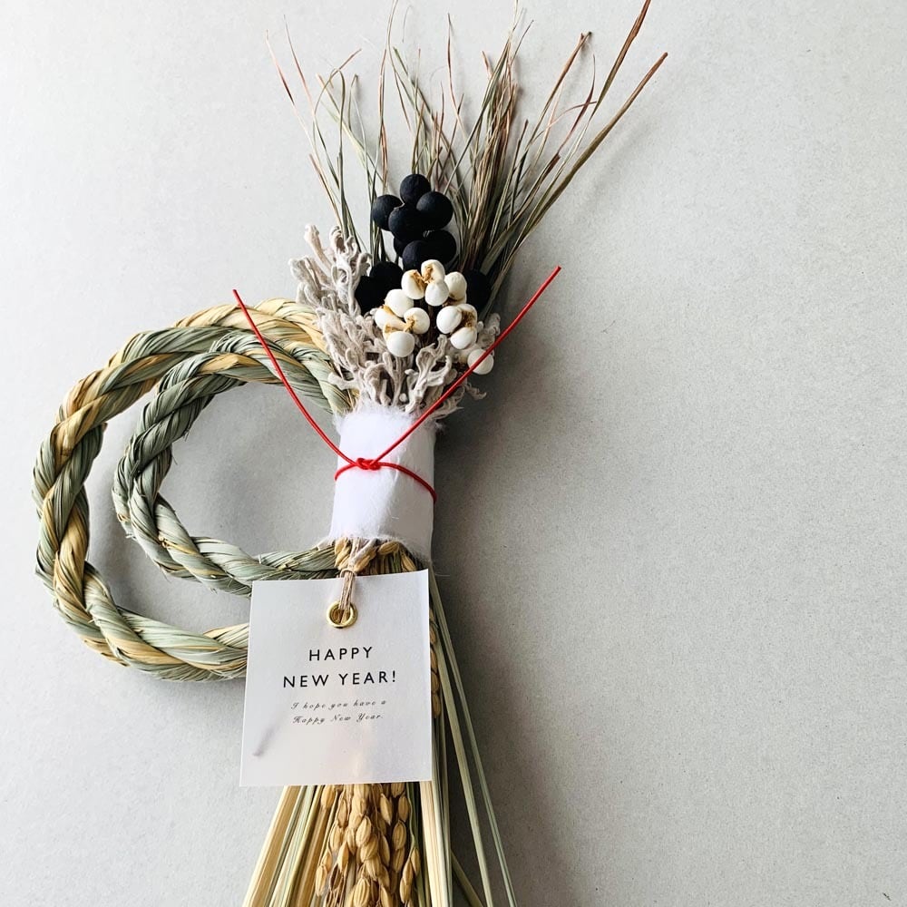【素材】稲藁、ドライレモングラス、ドライナンキンハゼ、ドライシャリンバイ、ドライシロタエギク、稲穂、和紙、水引
