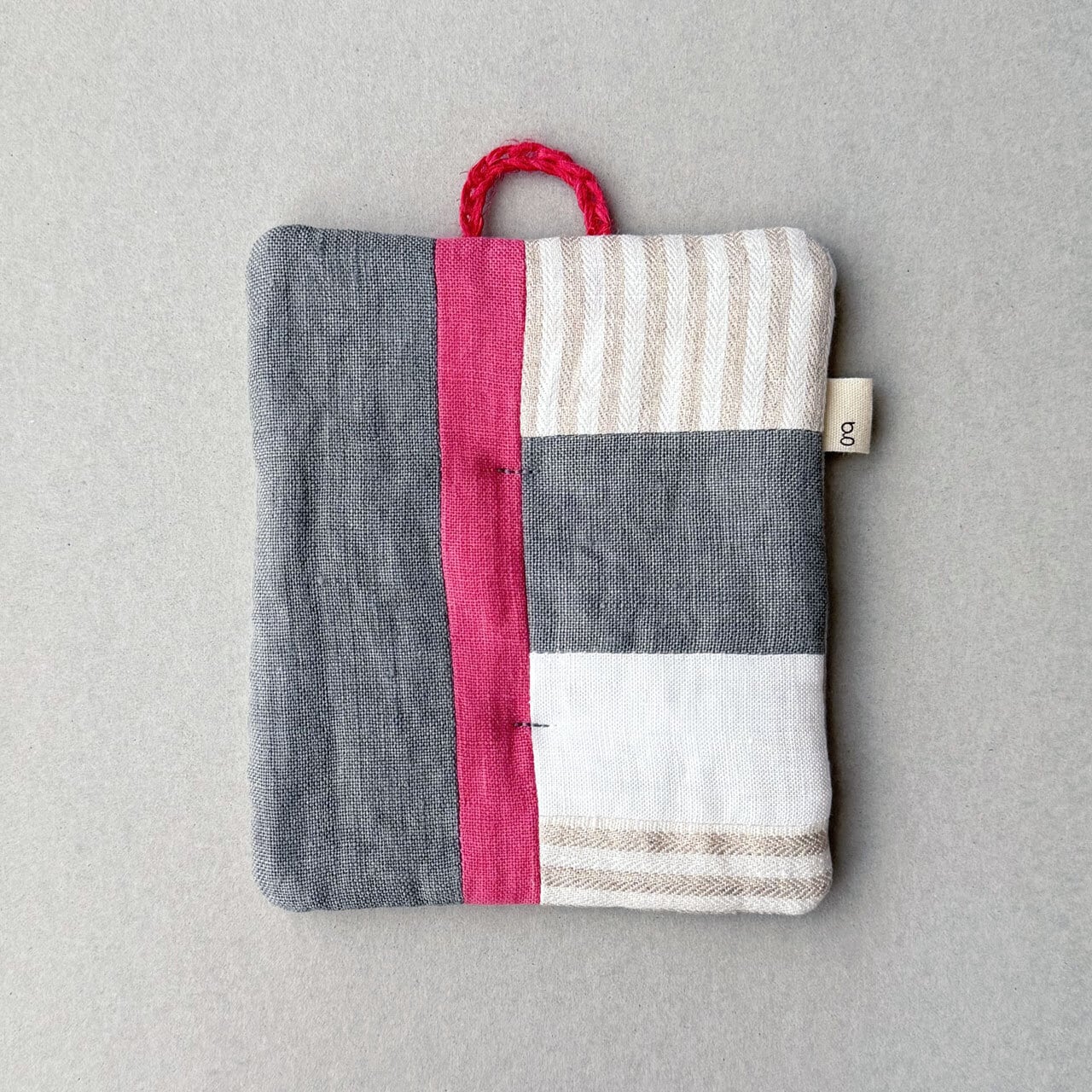 一点物のリネンのパッチワーク鍋つかみ・鍋敷き。鍋つかみ・鍋敷き・コースターなど用途に合わせてご使用できます。